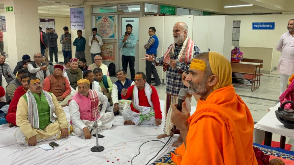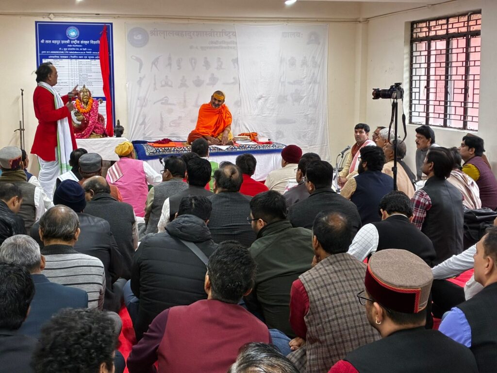 न्याय शास्त्र विद्वत गोष्ठी – दर्शन विभाग के न्याय विभाग के प्रो. राम चंद्र शर्मा जी, श्री लाल बहादुर शास्त्री राष्ट्रीय संस्कृत विश्वविद्यालय दिल्ली,, में पूज्य स्वामी श्री गोविंदानंद सरस्वती जी महाराज का आगमन , श्री लाल बहादुर शास्त्री राष्ट्रीय संस्कृत विश्वविद्यालय दिल्ली, , कुलपति प्रो. मुरलीमनोहर पाठक जी ने पूज्य श्री स्वामीजी का स्वागत किया, श्री स्वामीजी ने भगवती माता सरस्वती देवी को पुष्पांजलि समर्पण , दर्शन विभाग के न्याय विभाग के प्रो. राम चंद्र शर्मा जी ने पूज्य श्री स्वामीजी का स्वागत किया