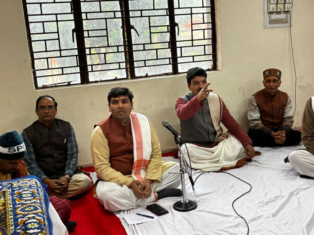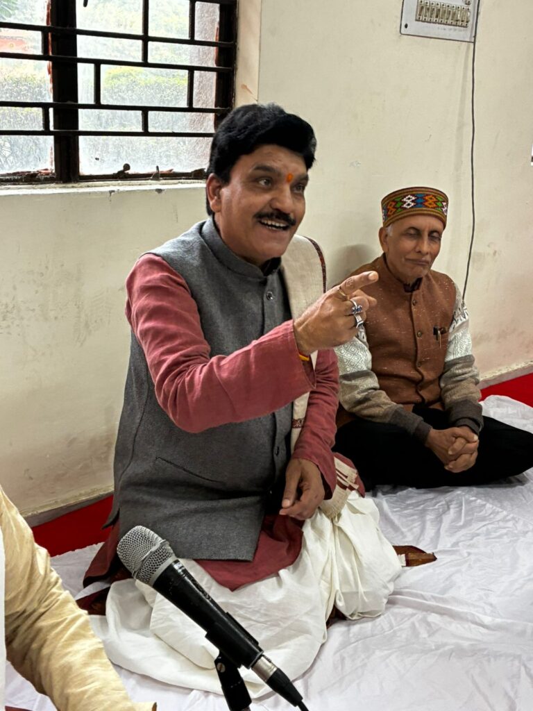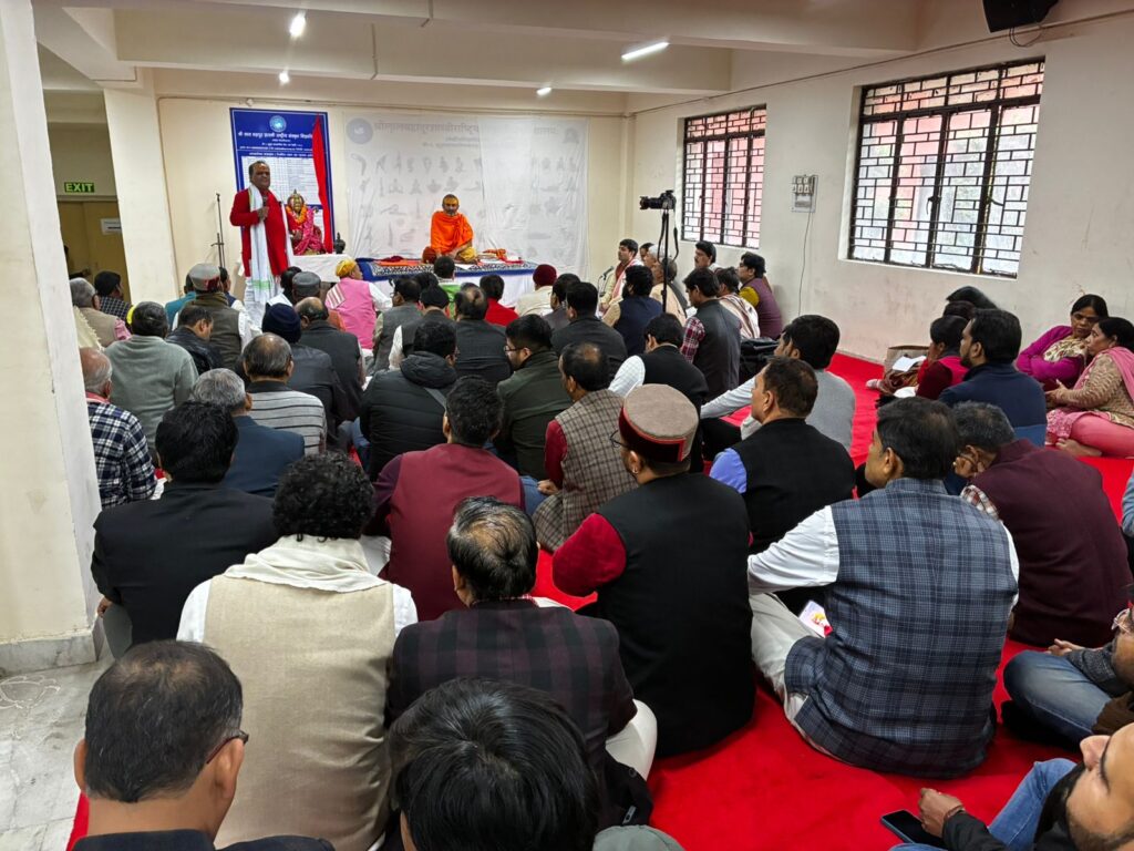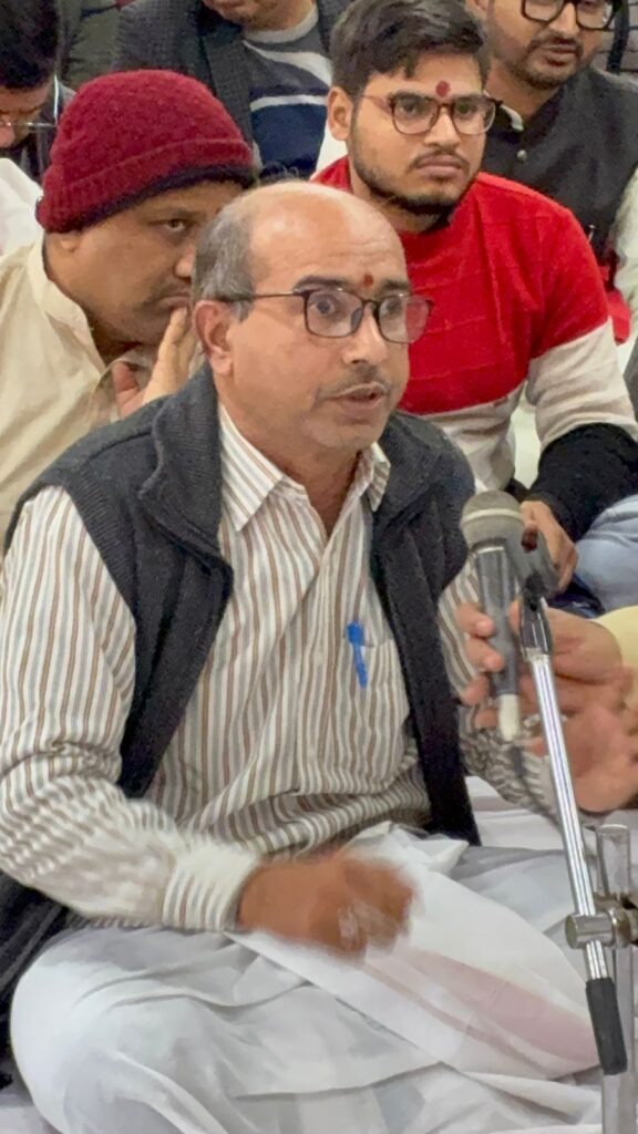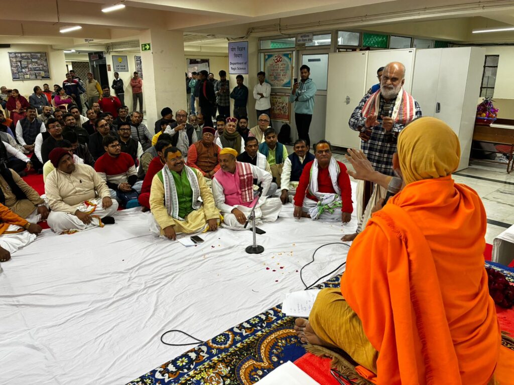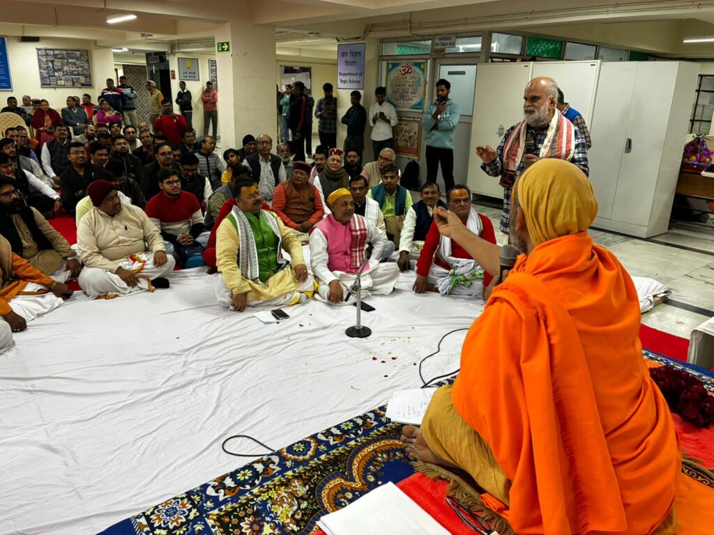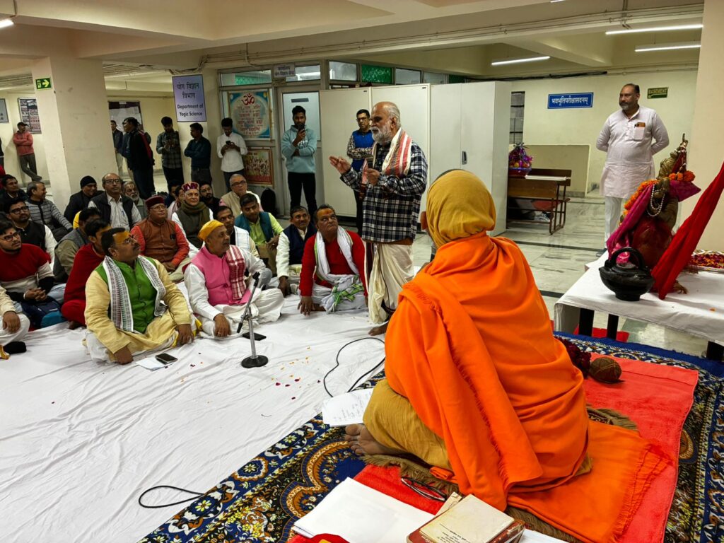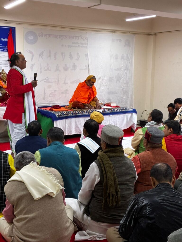 Nyaya Shastra Vidwat Gosthi, by Prof. Ram Chandra Sharma ji Faculty of Darshan Department of Nyaya, Sri Lal Bahadur Sastry National Sanskrit University Delhi, Poojya Swami Sri Govindananda Saraswati Ji Maharaj’s visit to Sri Lal Bahadur Sastry National Sanskrit University Delhi, Vice Chancellor Prof. Murlimanohar Pathak ji welcomed Poojya Sri Swamiji , Sri Swamiji Performed Pshpanjali to Bhagavati Mata Saraswati Devi ,